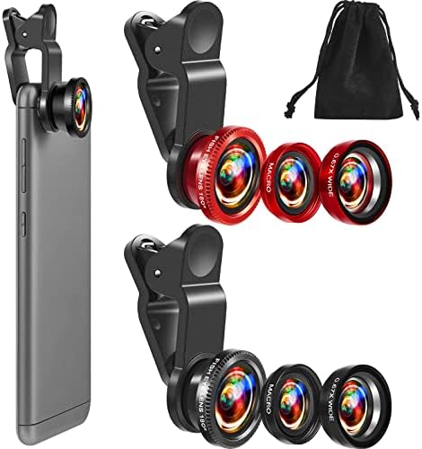 2 Pack Universal 3 in 1 Camera Lens Kit Phone Camera Lens Clip Fisheye Lens Macro Lens Wide Angle Lens Cell Phone Lens Attachments Compatible with Most Smartphones for Video, Live Show, Vlog