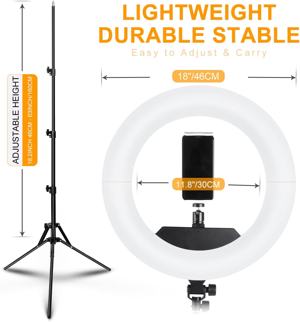 The 18″/45cm outer diameter of the ring light ensures a wide and even distribution of light, casting a flattering glow on your subject. With a powerful 55W 6700k dimmable LED light, you can easily adjust the brightness according to your requirements. Whether you are shooting a video for YouTube or creating captivating content for TikTok, this ring light is your go-to solution.