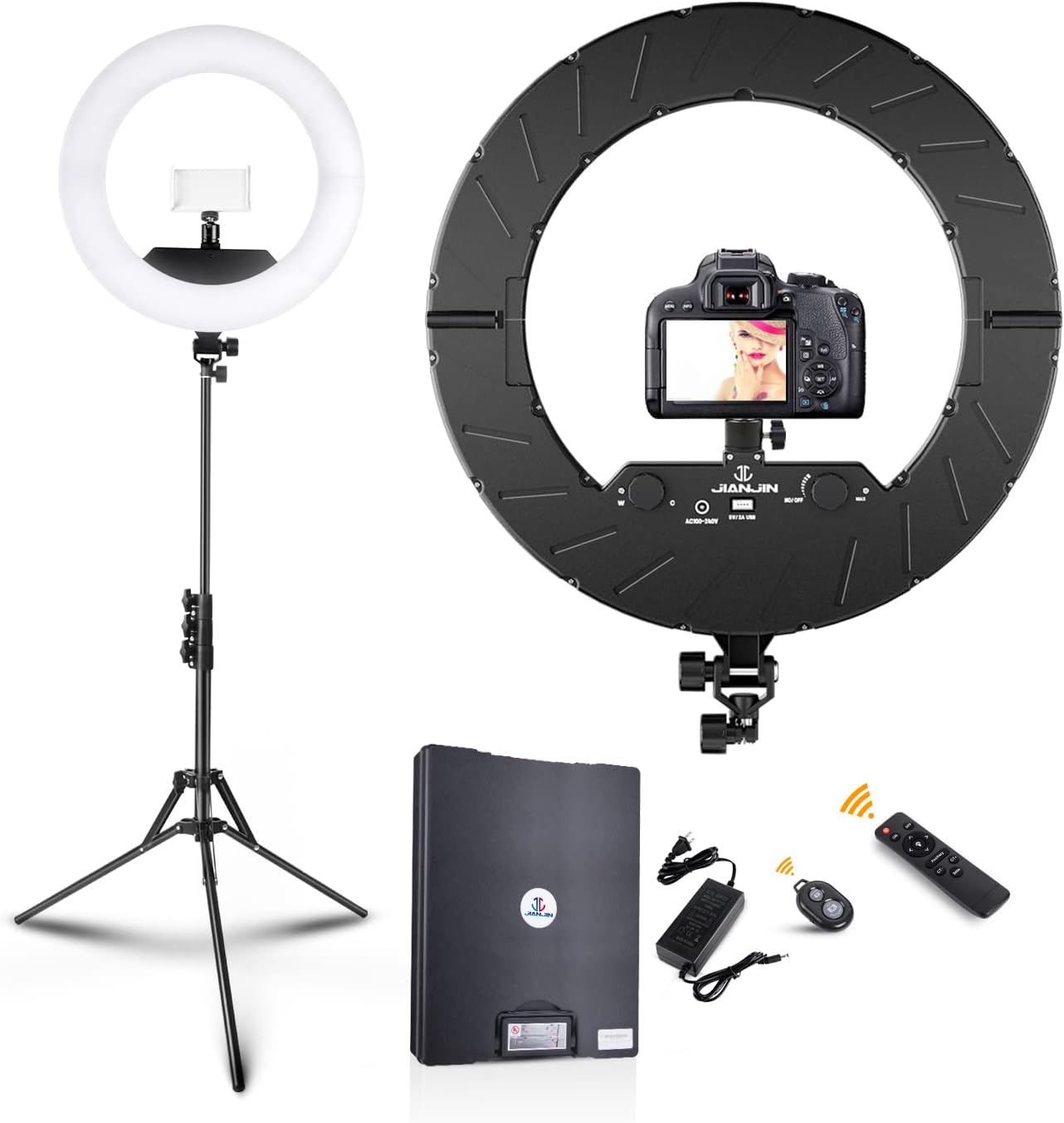 JJ JIANJIN Ring Light Kit:18"/45cm Outer 55W6700k Dimmable LED Light, Tripod Stand, Remote Controller,Box for Camera,Smartphone,YouTube,TikTok,Self-Portrait Shooting,CRI90,Black