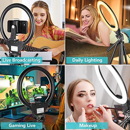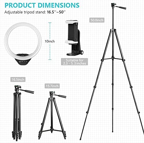 Sensyne 10” Ring Light with 50” Extendable Tripod Stand, LED Circle Lights with Phone Holder for Live Stream/Makeup/YouTube Video/TikTok, Compatible with All Phones